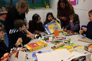 Os participantes foram, então, desafiados a iniciar a sua construção criativa de 'bichos-de-sete-cabeças', a partir de diversos materiais disponíveis: paus, pinhas, plantas secas; e rolos e embalagens de papel-cartão; sendo estes montáveis por cola, fios, tachas; e decoráveis com lápis de cor, de cera, canetas de feltro e tintas de água.